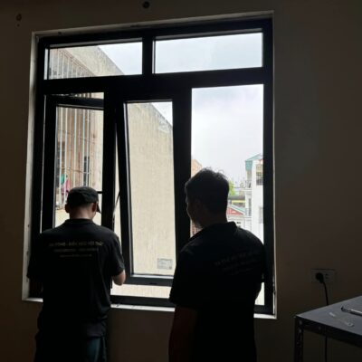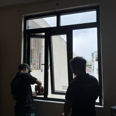 Trời mưa nhưng vẫn hoàn thành lắp đặt cửa nhôm kính cho anh khách tại Kim Nỗ, Đông Anh, HN